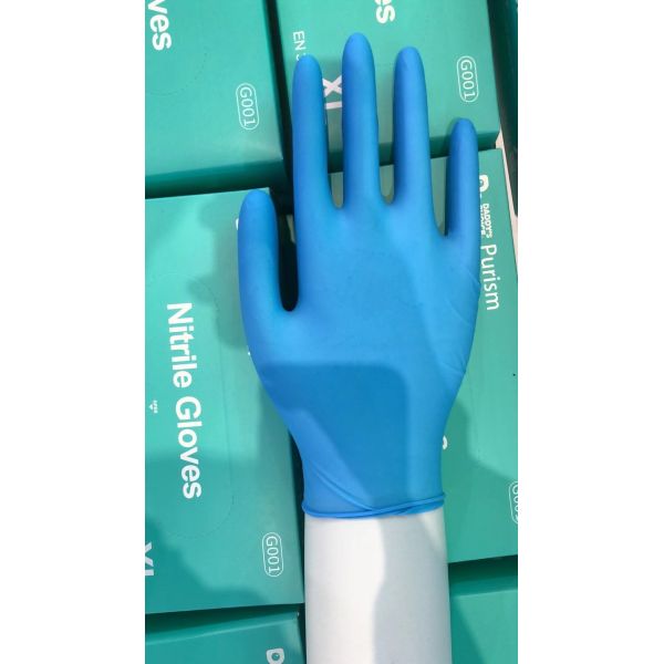 Hospital Disposable Exam Gloves Color Blue Nitrile Gloves Three Sizes Images |